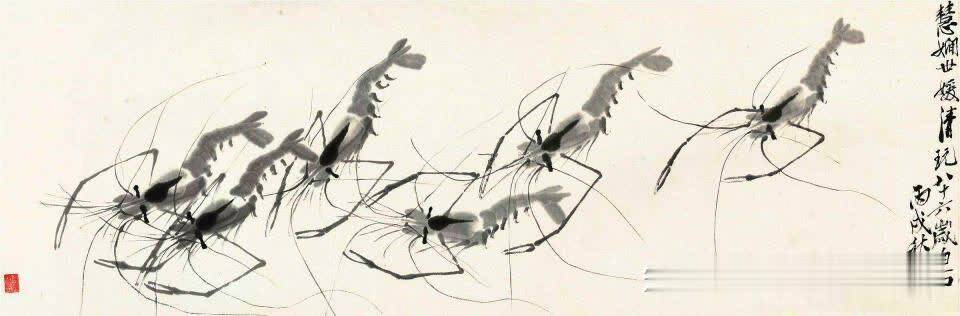 ▲齐白石画虾图。